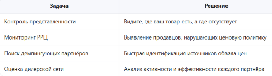 - Полноту — охват 100% продавцов в категории, а не выборочная проверка