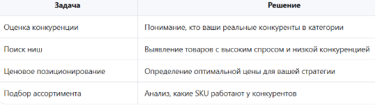 Анализ показывает категории с высокой маржинальностью и низкой конкуренцией — идеальные ниши для расширения.