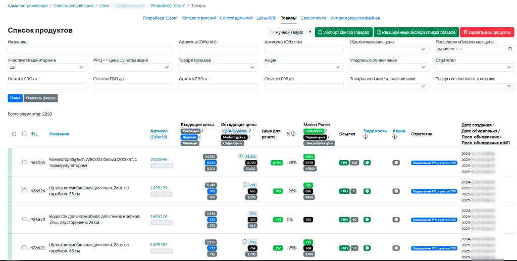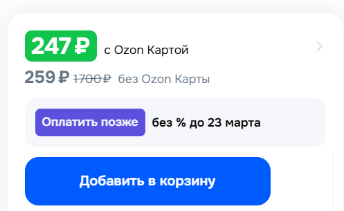 Укажите артикулы, категории или конкурентов — система начнёт собирать данные о конечных ценах с учётом СПП, скидок по Ozon Карте и текущих акций площадки. - Настройте правила репрайсинга под алгоритмы Ozon